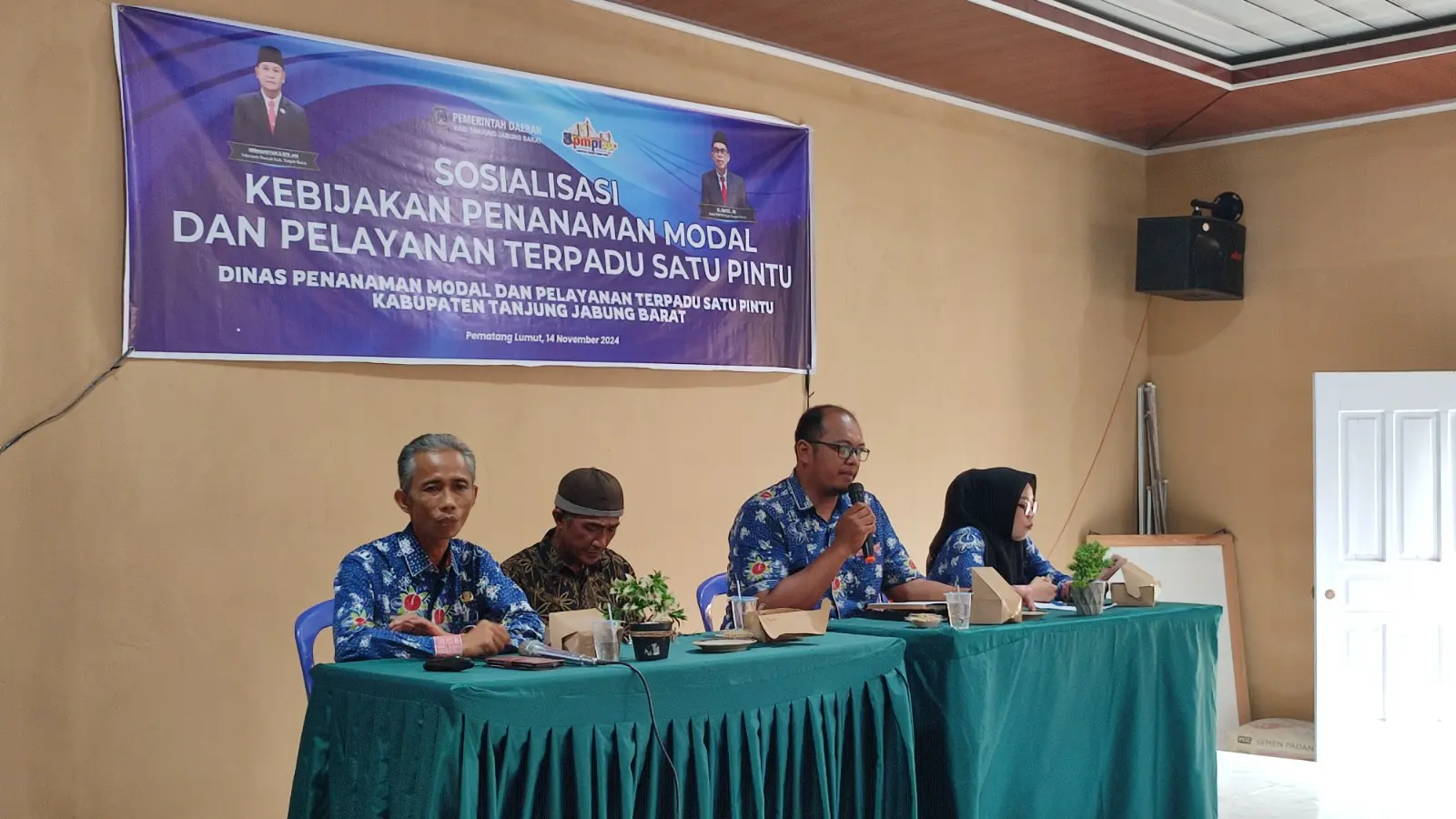 Sebagai amanat dari Permendagri nomor 138 tahun 2017 Tentang Penyelenggaraan Pelayanan Terpadu Satu Pintu Daerah, Dinas Penanaman Modal dan Pelayanan Terpadu Satu Pintu Kabupaten Tanjung Jabung Barat menyelenggarakan Sosialisasi Kebijakan Penanaman Modal dan Pelayanan Terpadu Satu Pintu Tahun Anggaran 2024 yang diselenggarakan di Aula Kantor Desa Pematang Lumut Kecamatan Betara, Kamis (14/11/2024).