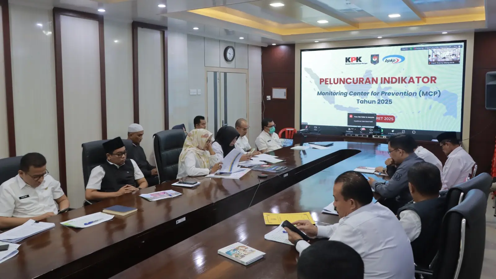 Wakil Bupati Tanjung Jabung Barat, Dr. H. Katamso, SA, SE, ME, memimpin pelaksanaan kegiatan virtual dalam rangka mengikuti peluncuran Indikator Indeks Pencegahan Korupsi Daerah (IPKD) Monitoring Center for Prevention (MCP) Tahun 2025 oleh Komisi Pemberantasan Korupsi (KPK). Rabu (5/3).