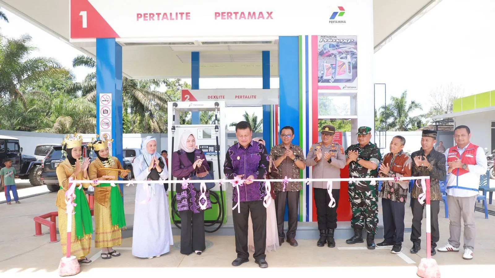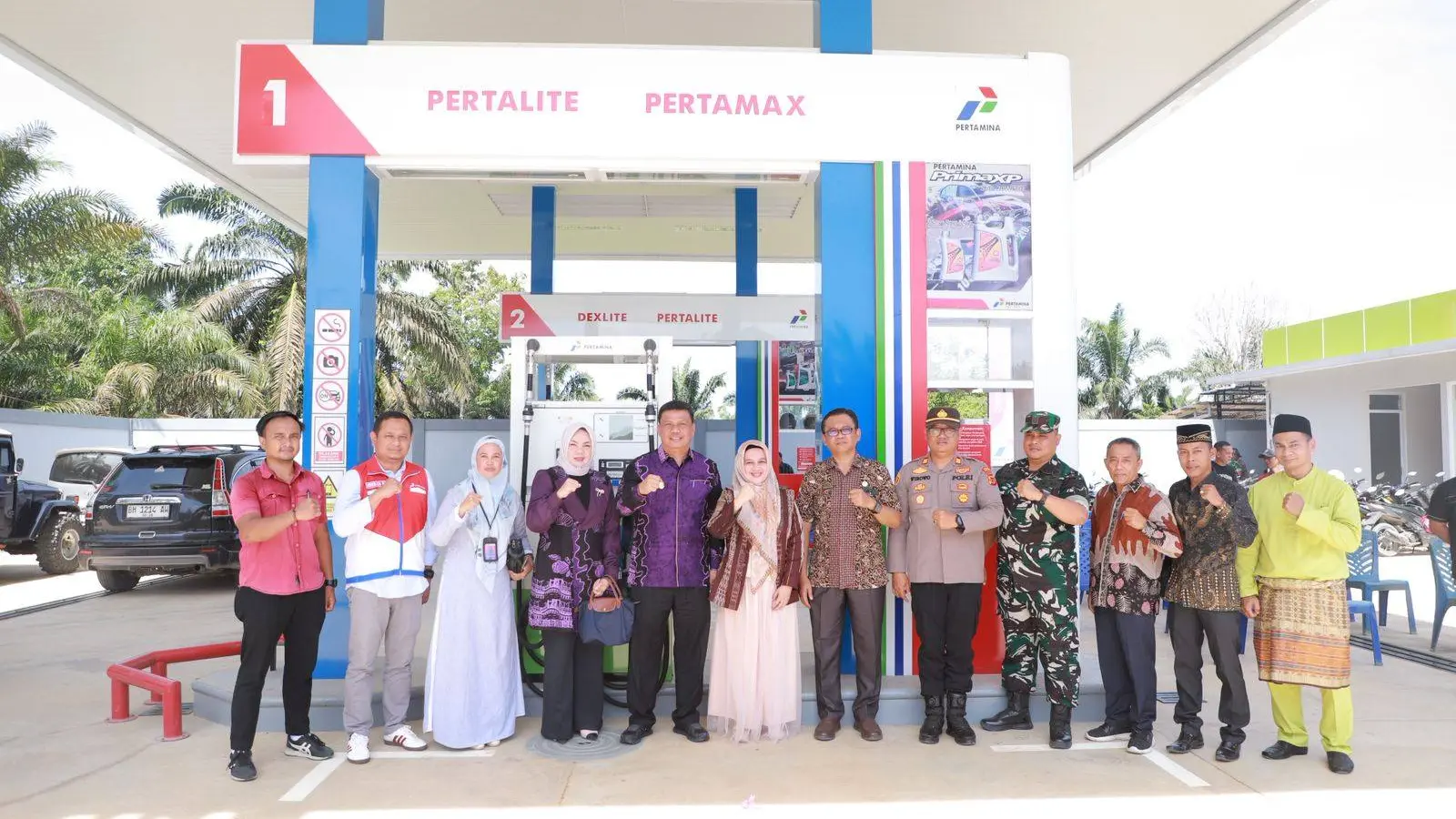 Wakil Bupati Tanjung Jabung Barat, Dr. H. Katamso, SA, SE, ME, meresmikan operasional Stasiun Pengisian Bahan Bakar Umum (SPBU) di Desa Panyabungan, Kecamatan Merlung, pada Sabtu (17/05).