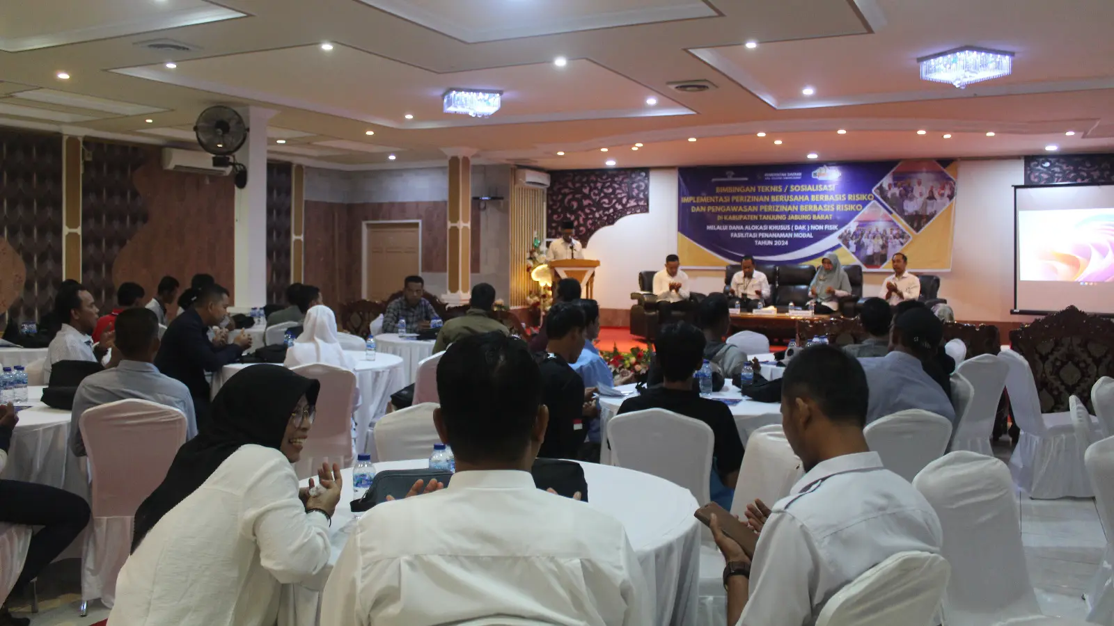 Dinas Penanaman Modal dan Pelayanan Terpadu Satu Pintu (DPMPTSP) Kabupaten Tanjung Jabung Barat bekerja sama dengan Dinas Ketahanan Pangan mengadakan kegiatan sosialisasi terkait Perizinan Berusaha Pangan Segar Asal Tumbuhan Produksi Dalam Negeri Usaha Kecil (PSAT-PDUK) di Aula Tungkal Hotel Rabu (06/11/2024). Program ini bertujuan untuk memberikan pemahaman kepada pelaku usaha mikro dan kecil tentang pentingnya legalitas dalam mengedarkan pangan segar yang telah dikemas dalam bentuk eceran.