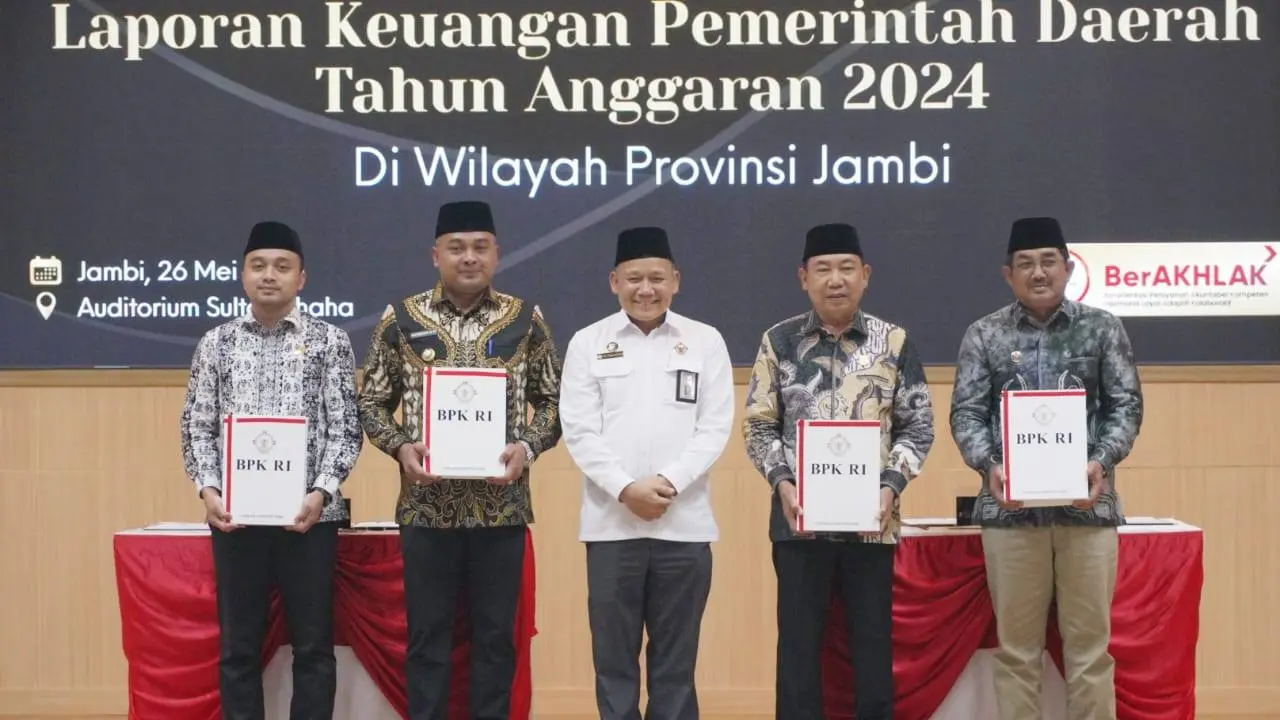 Pemerintah Kabupaten Tanjung Jabung Barat kembali mengukir prestasi membanggakan di kancah pengelolaan keuangan daerah. Dalam acara penyampaian Laporan Hasil Pemeriksaan (LHP) atas Laporan Keuangan Pemerintah Daerah (LKPD) Tahun Anggaran 2024 yang digelar oleh Badan Pemeriksa Keuangan (BPK) Perwakilan Provinsi Jambi, Kabupaten Tanjung Jabung Barat kembali meraih Opini Wajar Tanpa Pengecualian (WTP) untuk yang ketujuh kalinya secara berturut-turut.