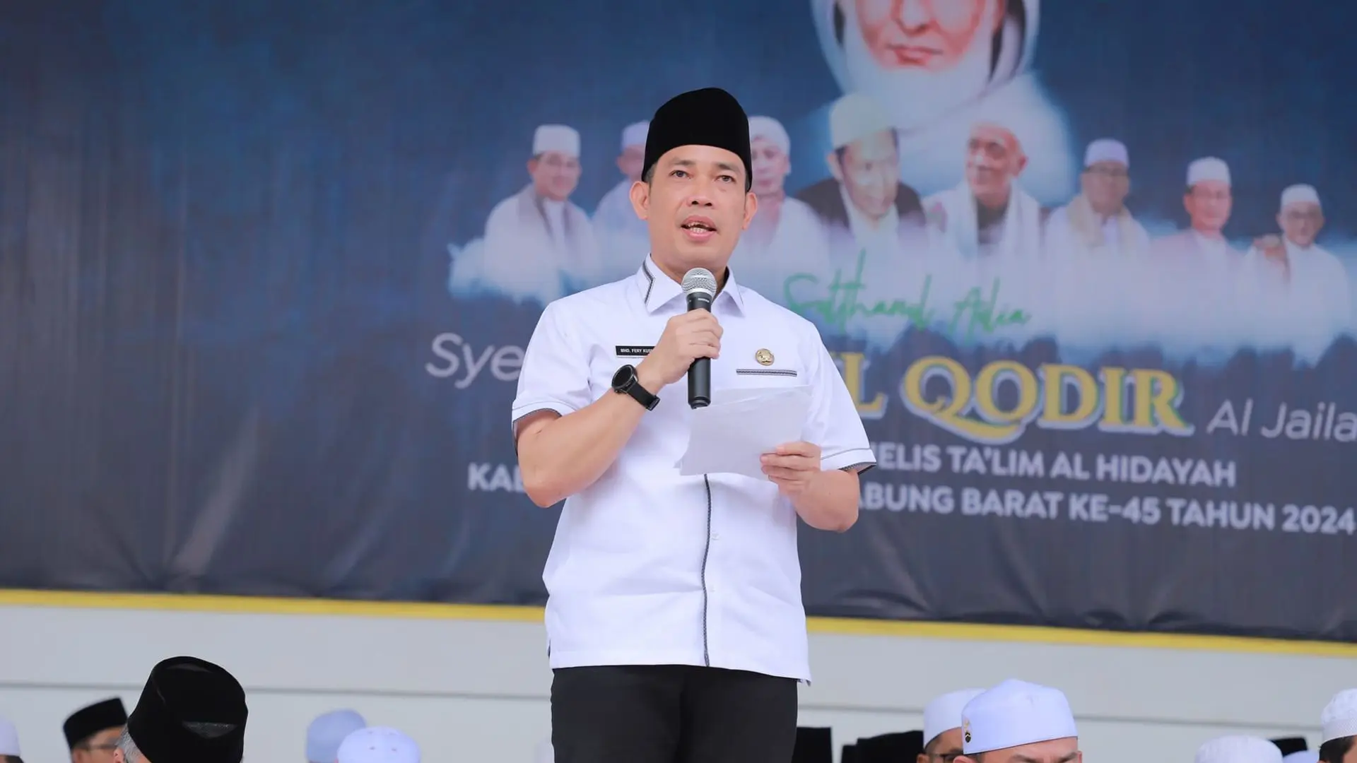 Penjabat Sementara (Pjs) Bupati Tanjung Jabung Barat, dr. H. Mhd. Fery Kusnadi, Sp.OG, menghadiri Haul Akbar Sulthanul Aulia Syekh Abdul Qadir Al Jailani sekaligus Milad Majelis Ta'alim Al Hidayah yang ke-45 tahun 2024, Senin (14/10).