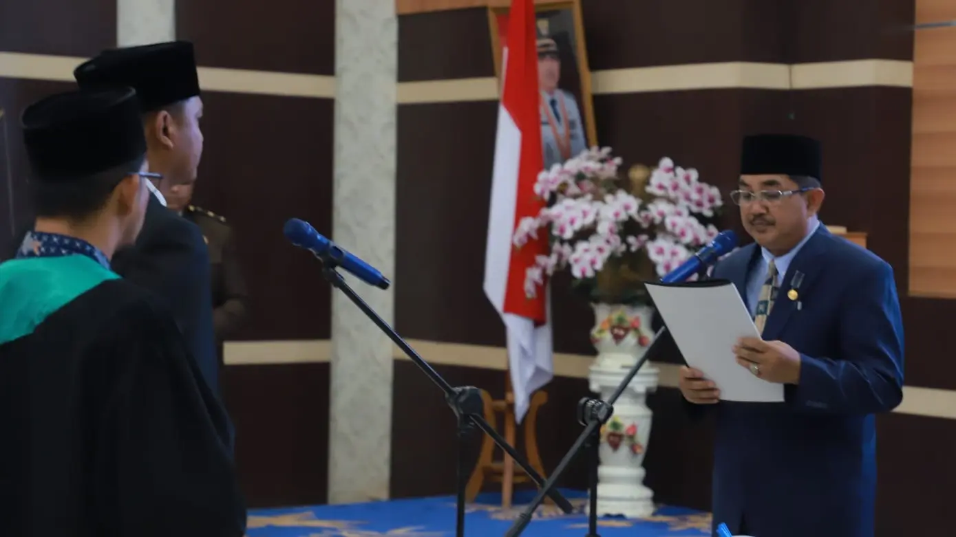 Bupati Tanjung Jabung Barat, Drs. H. Anwar Sadat, M.Ag, melantik dan mengambil sumpah janji Sekretaris Daerah (Sekda) Tanjab Barat Definitif, Hermansyah, S.STP., MH, di rumah dinas bupati, Kamis (19/9/2024). Pelantikan ini merupakan puncak dari proses seleksi terbuka Jabatan Pimpinan Tinggi Pratama (JPTP) di lingkungan Pemerintah Kabupaten Tanjung Jabung Barat.