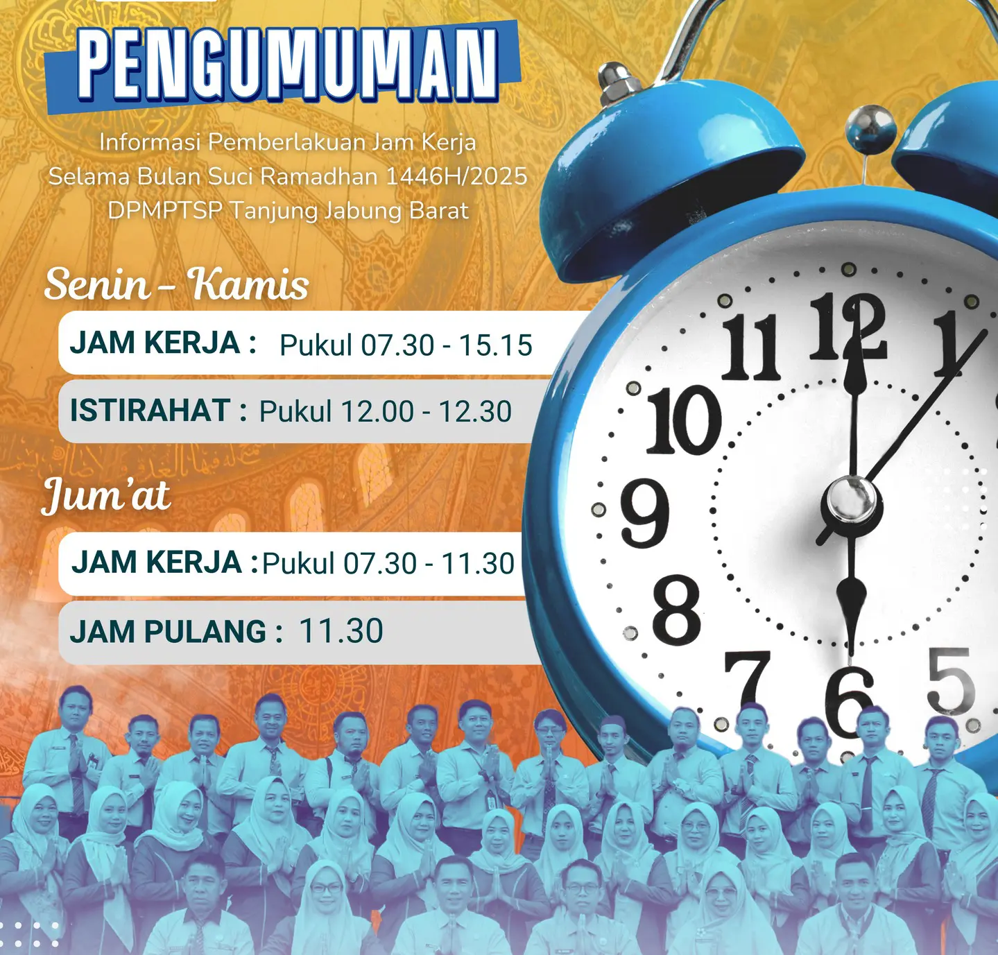 Bulan Ramadhan merupakan momen penuh keberkahan yang dapat dijadikan sebagai sarana dalam meningkatkan kualitas pelayanan publik, khususnya di Dinas Penanaman Modal dan Pelayanan Terpadu Satu Pintu (DPMPTSP) Kabupaten Tanjung Jabung Barat. Ramadhan mengajarkan nilai-nilai kesabaran, ketulusan, dan tanggung jawab, yang selaras dengan prinsip pelayanan prima kepada masyarakat.