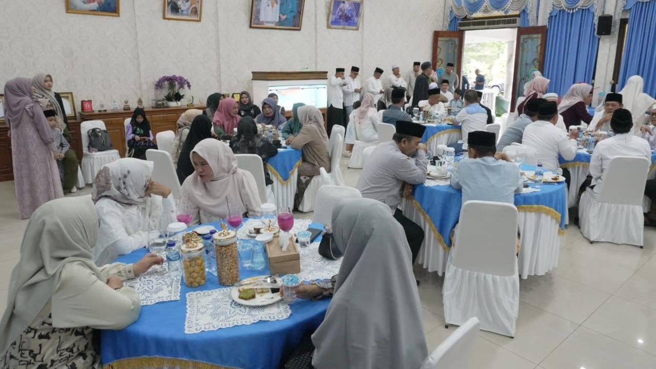 Acara yang berlangsung di rumah dinas bupati tersebut turut dihadiri oleh para pejabat daerah, tokoh agama, tokoh masyarakat, serta warga yang ingin bersilaturahmi secara langsung dengan kepala daerah. Bupati dan Ketua TP PKK tampak menyambut hangat setiap tamu yang datang, dan suasana terlihat penuh keakraban.